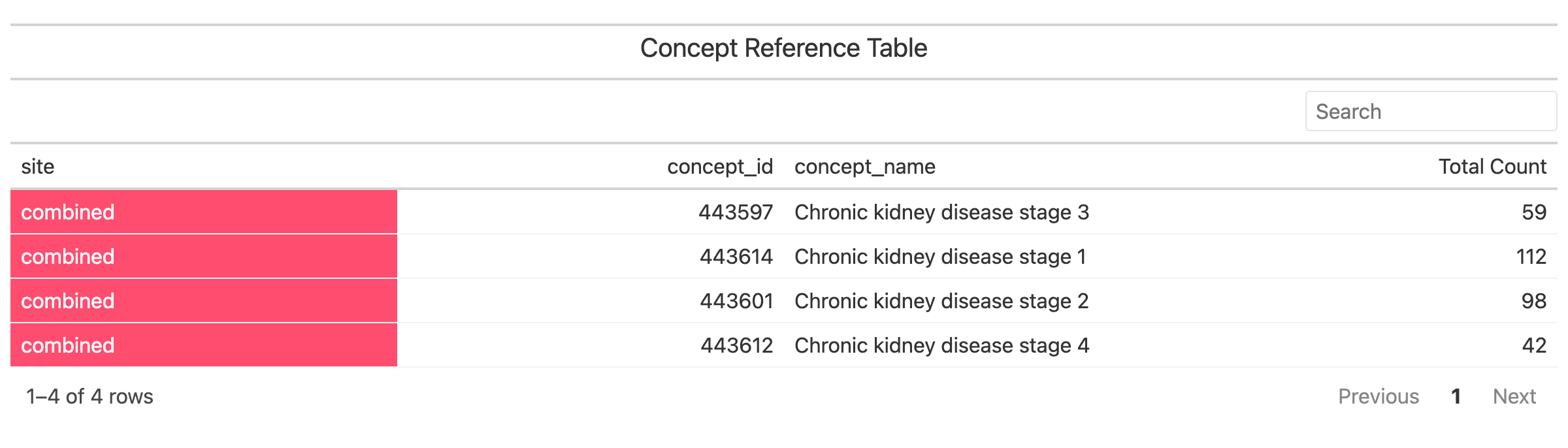 | local.description.raw | This check produces a raw data output containing nine columns of data: <br> | Column | Data Type | Definition | |-------------------|---------------------|------------------------------------------------------------------------------------------------------| |`site` | character | the name of the site being targeted OR "combined" if multiple sites were provided | |`domain` | character | the domain associated with the provided concept set | |`concept_id` | numeric / character | the primary concept, native to the CDM and mapped from the source | |`source_concept_id` | numeric / character | the source concept, from the source system and mapped to the CDM | |`ct` | numeric | the number of times the `concept_id` / `source_concept_id` pair occurs in the data | |`denom_concept_ct` | numeric | the number of times the `concept_id` appears in the data | |`denom_source_ct` | numeric | the number of times the `source_concept_id` appears in the data | |`concept_prop` | numeric | the proportion of `concept_id` appearences made up by the `concept_id` / `source_concept_id` pair | |`source_prop` | numeric | the proportion of `source_concept_id` appearances made up by the `concept_id` / `source_concept_id` pair | {.dqcheck-table} |