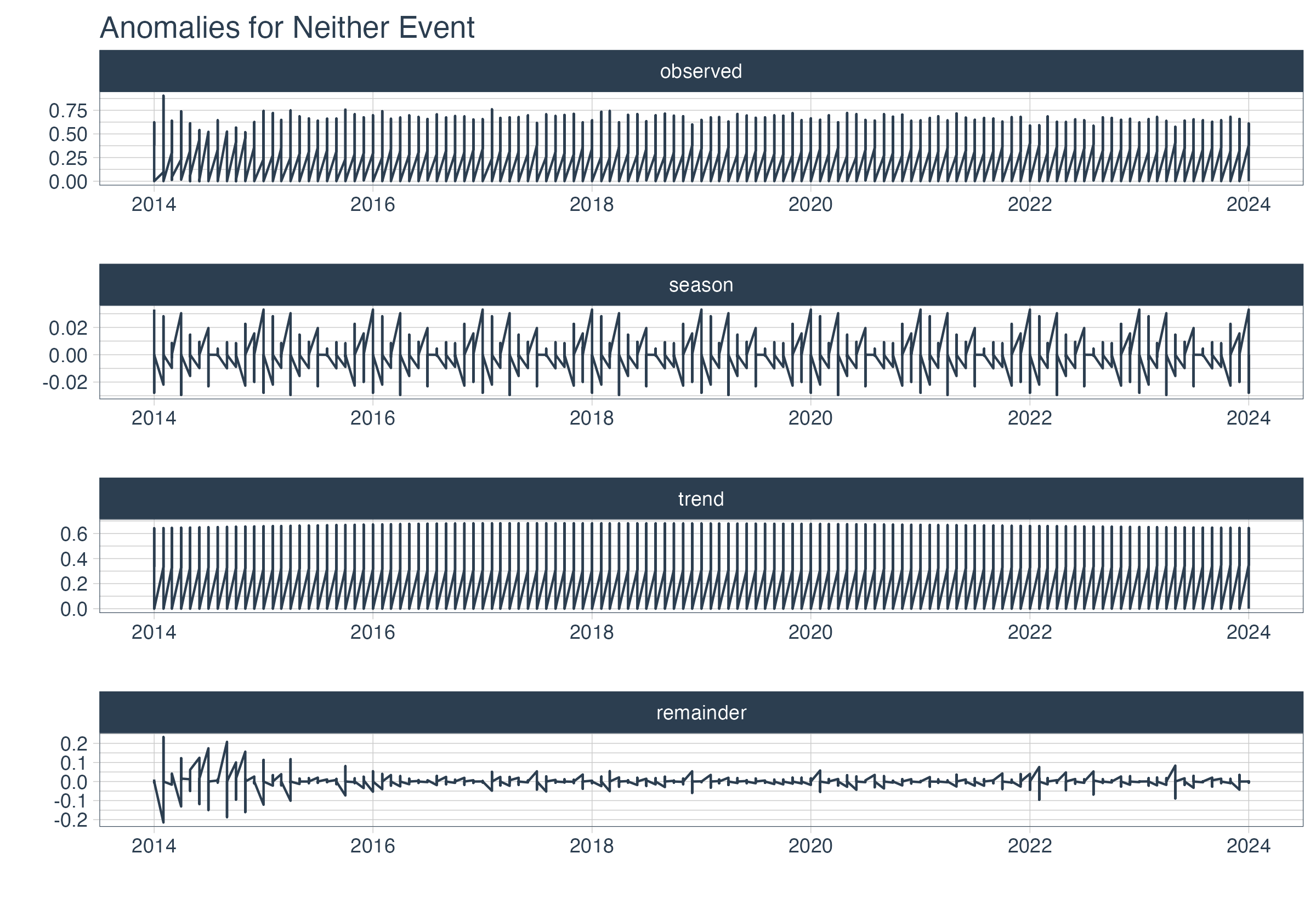 numeric | the original proportion after the season and trend components have been removed and anomalies have been detected |